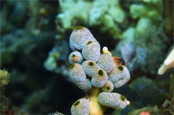 先让我们来了解一下海鞘的生理结构。海鞘通常呈桶状或被压扁的圆柱形状,顶部有多个辐射状的口。它们可以通过纤维素质的黏附器粘附在岩石、珊瑚或其他硬物上,以减少被敌人发现的机率。