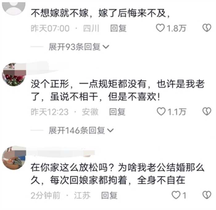 这个四川的阿姨说自己家的家庭情况也并不是多么好,所以让女儿找女婿的时候,也不用找偷,多么有钱,多么富有的,主要就是看一个人的人品,在相处的阶段,自己的准女婿也表现得非常好,来到家里之后也是会帮忙做家务,可是在订婚之后女婿每一次来自己家,不光不做什么事儿,反而还把鞋子脱了,躺在沙发上玩手机。这就让这个阿姨比较犹豫,觉得自己的女婿反差太大。