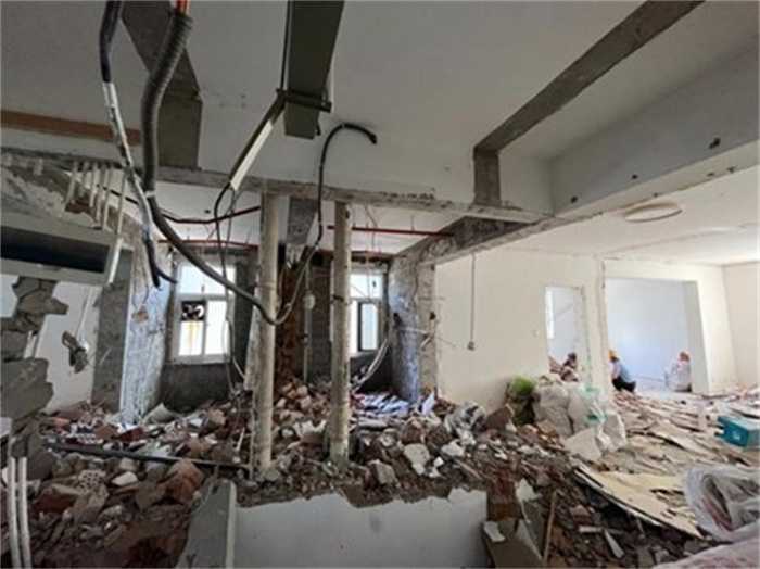 陕西西安太乙家园小区社区针对近日多户业主所反馈的A座单元楼4层六货的房屋墙面全部被砸掉的事件进行了回应经过现场勘查,对于楼体的抗震性会产生一定的影响,但是并没有砸承重墙,目前已经对该栋楼实施了停水停电的措施,并且严禁在进行施工。