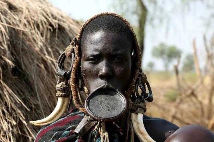 这对摩尔西族来说也是一件棘手的事情,女孩在10岁的时候,就要将她的嘴唇给切开,然后放入一个小盘,把嘴唇切开部分撑起来。