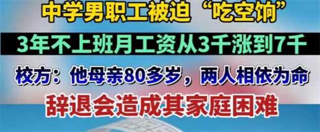 山西某男子近日自曝在学校吃空饷一事,引起了广泛关注。这名男子声称自己被迫吃空饷已经三年之久,工资从最初的3000元涨到了7000多元。他之所以举报自己,引发了人们的疑问。