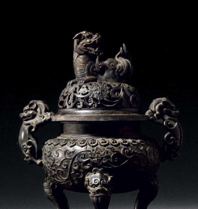 5.五子狻猊,形如狮,喜烟好坐,所以形象一般出现在香炉上。明清时期石狮或铜狮颈下项圈中间的龙形装饰物也是狻猊的形象。
