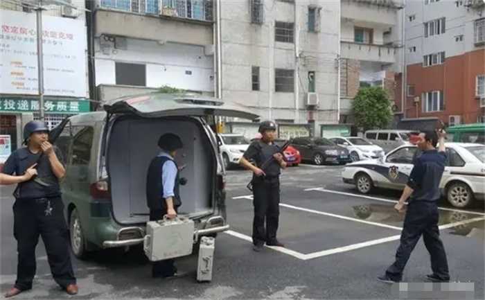 只见5名蒙着面的男子,手持枪支和管制刀具,一边从运钞车上将现金搬运到抢来的出租车上,一边威胁安保人员后退,不然就开枪。