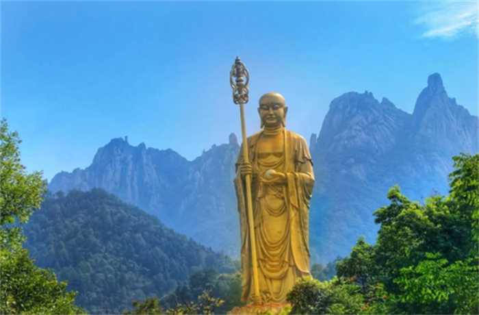被公认为“诡异”佛像的其中一座,那就是“神光普照”的地藏菩萨像。地藏菩萨像位于我国的九华山,九华山是佛教四大名山之一,也是地藏菩萨的道场。九华山地藏菩萨像宏伟壮观,高达84米,加上莲花宝座总高度达99米。它的高度恰好对应九华山99座山峰,寓意着金地藏享年99岁。