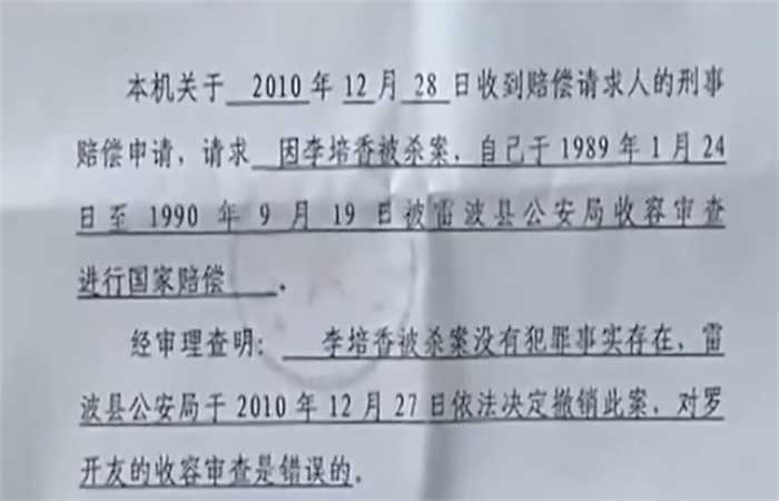 2010年12月28日,警方特意在罗开友村里召开“正名”大会,同时为罗开友发15万补偿,家里其他人发放10万元的补偿金。