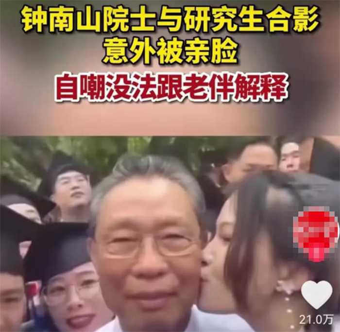 钟南山和学生合照时意外被亲