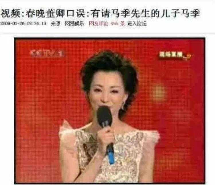 2009年春晚,央视名嘴董卿也出现过主持生涯中最严重的一次失误。为了纪念去世的相声大师马季,其儿子马东上台表演父亲的经典之作《五官新说》,在报节目时董卿把“马先生的儿子马东”说成了“马先生的儿子马季”,也是很尴尬了。