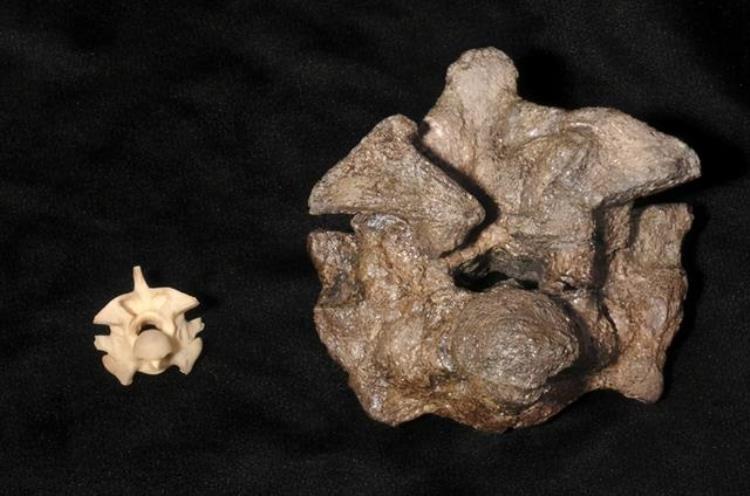 网纹蟒与泰坦巨蟒脊椎骨化石比较