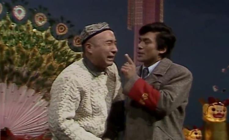 彼时陈佩斯扮演了一个在路边小摊上卖羊肉串的商人,而朱时茂则扮演了一位来检查的工商人员,陈佩斯为了躲避检查,将自己伪装成了一位新疆人,穿上极具特色的民族服饰,带上夸张的八字胡,朱时茂便立马认不出他了。