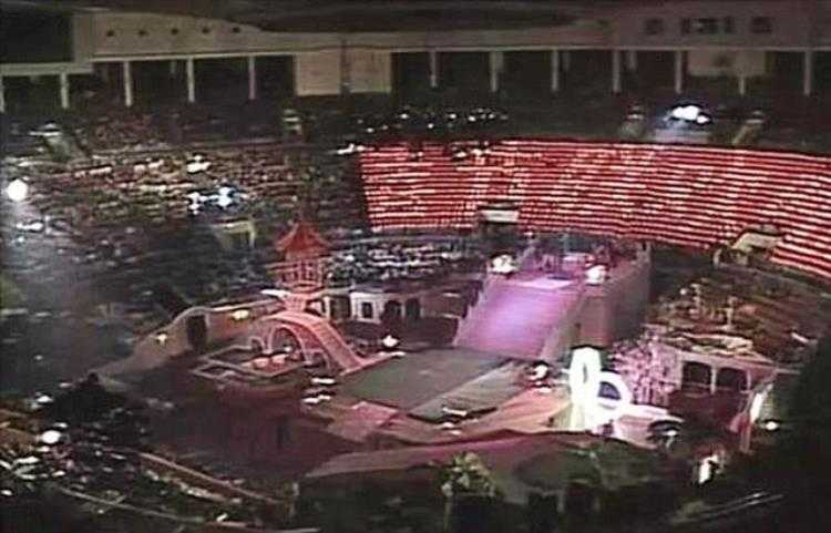 不过虽然工体的场馆足够大,但是当时的设备却完全跟不上,现场的灯光都是从电影厂调来的筒子灯,转动的时候还需要工作人员用竹竿去拨才行,而现场的录音设备与通讯设备也十分落后,连对讲机都没有,导演现场的调度工作人员完全听不到。