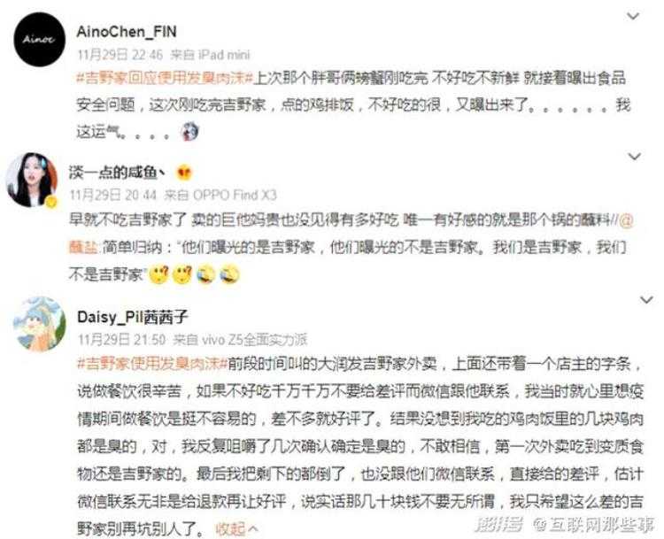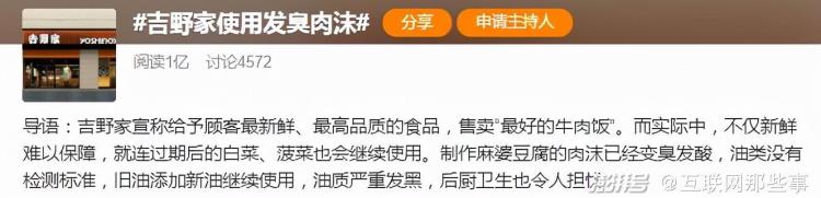有着120年历史的“吉野家”,继在中国市场“水土不服,年关50家直营店”之后,又因“臭肉门”事件再上热搜,令消费者恼火的是,吉野家事后却给出了“甩锅式”回应,称涉事门店与吉野家不属同一运营公司,就在吉野家大玩李逵李鬼游戏之际,我们发现,吉野家的经营每况愈下,这个年巨亏75亿的日本餐饮连锁巨头,还能在中国火多久?01,“臭肉门”只是吉野家冰山一角2021年11月29日,有着餐饮行业“公敌”之称的“内幕纠查局”带来了最新一期卧底调查节目,直指吉野家用“变酸发臭肉、过期蔬菜和黑质油”!随后该视频引发大量传播,并冲上热搜,截止本文发稿,#吉野家使用发臭肉沫#相关话题,阅读量已突破1亿大关。