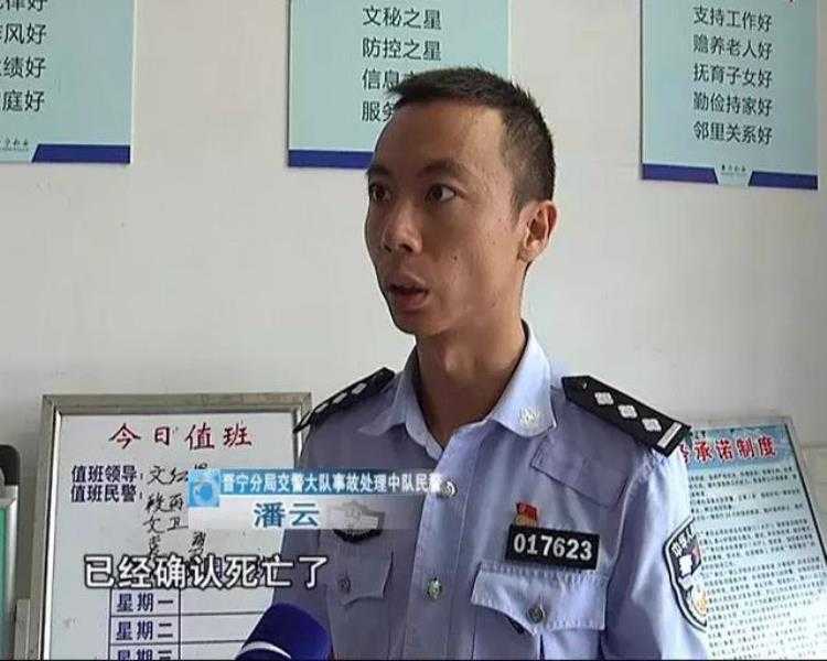 晋宁分局交警大队事故处理中队民警 潘云:当时他是说,他喝了酒,那里是一段下坡路,在那里他是遛空挡,他没有注意到那个人,所以就撞了。