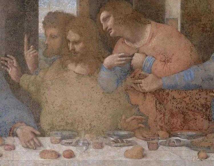 《最后的晚餐》是为修道院创作的墙画,损毁比较严重,修复了很多次,但还是可以感受到它的艺术魅力。