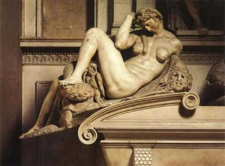 他为美第奇家族陵墓创作的《晨》《暮》《昼》《夜》四尊雕像,代表着尘世生活无穷烦恼的四种形式,蕴含着他对哲学的艺术沉思。