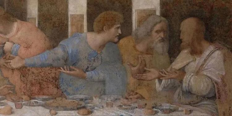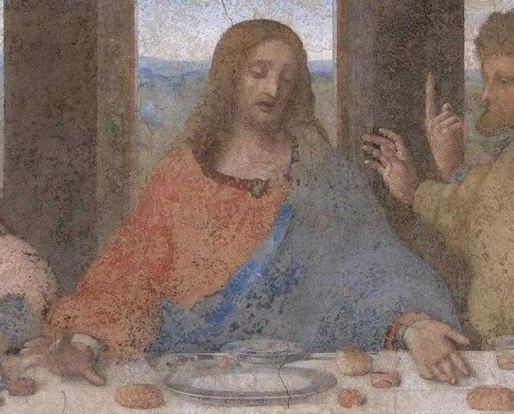 基督坐在中间,背后明亮的窗户衬托了这位救世主的形象。达芬奇描绘了当基督说出“你们当中有一个人要出卖我了。”这句话的瞬间,门徒各种不同的行为和反应,达芬奇对人心的洞彻可见一斑。