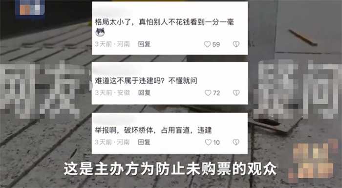 据了解,这一次的在音乐节办日期是在六月底的时间,从6月23日开始,当地居民就已经发现龙湖大桥周围已经新建了很多围挡,有市民认为,这是主办方为了防止有人不买票在桥上观看演唱会所打造的围挡,根据网上传播的视频内容来看,这些围挡已经占据了盲道并且破坏了路面,很多人都在这个视频下面发言评论,认为举办方的这个行为明显有问题。