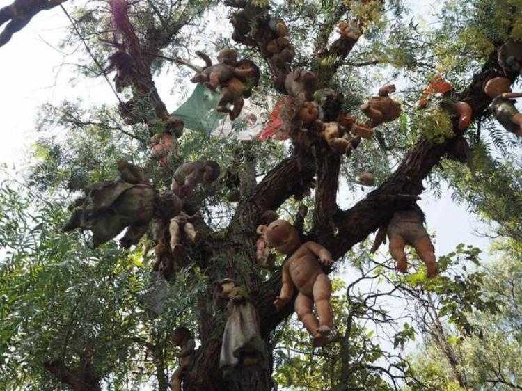 但等你抵达岛边,还没登陆,你就能看到岛上的树干上挂满了许多形态各异的娃娃,有的看起来十分逼真,宛如真人,再加上经历风吹日晒,娃娃身上腐烂发霉,在“恐怖谷理论”下,这些娃娃看起来让人觉得毛骨悚然,而且这个岛上的娃娃数量之多,实在是令人震惊,到今天为止已经上千。