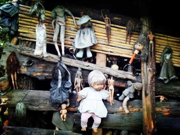 而它可怕的原因,并非是像瓦屋山一样会让人有进无出,而是因为这片森林里,挂着上千个宛如真人的娃娃玩偶,有的还十分崭新,有的却已经残缺不全,甚至宛如“尸块”一般,被绳子紧紧地拴在树上,每当有风吹过,这些娃娃就会发出奇怪的噪音,十分瘆人。