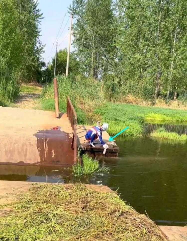 据长江君了解,这是当地一位钓鱼人在河边钓鱼时拍下的画面——当时他正在河边钓鱼,忽然对面来了一位“奥特曼”,这位钓鱼人一开始还以为是个淘气的孩子出来玩,结果“奥特曼”走近一看,竟是个成年人!