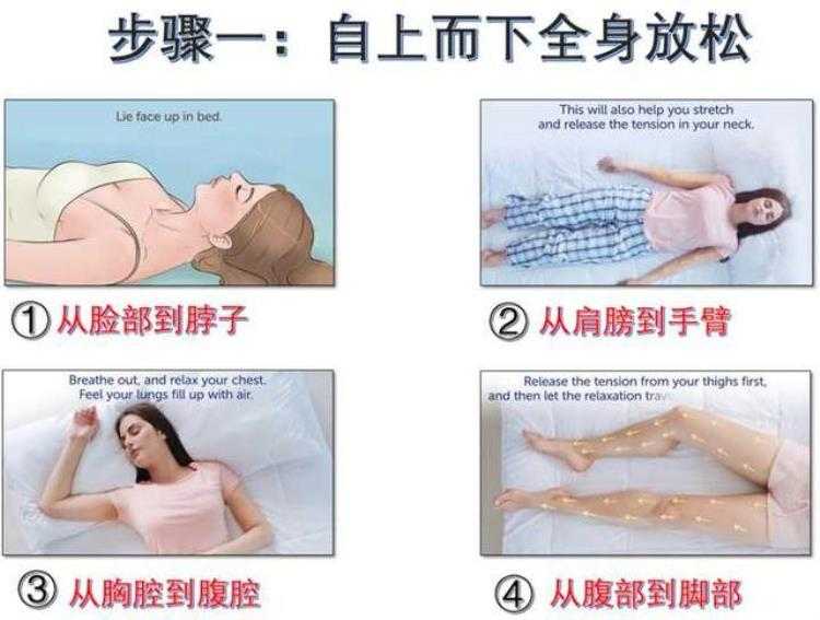 闭眼,平躺在床上,什么都不想,把注意力全部集中在放松上,开始感受身体满满的软下来。