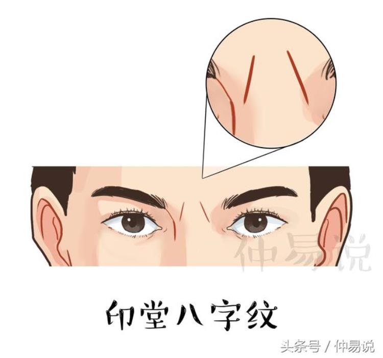 印堂有形似八字的纹路,主一人一生奔波劳碌,事倍功半,女子还容易再嫁,婚姻波折。