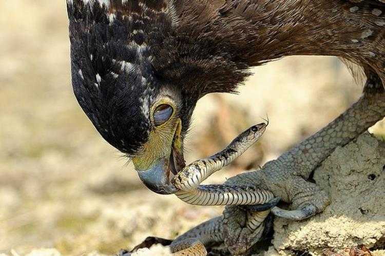 光是看看名字,你就知道它是为什么而生的。蛇雕最大的特点是喜欢把蛇生吞进肚子里,不知道是不是享受蛇在挣扎的那种感觉。