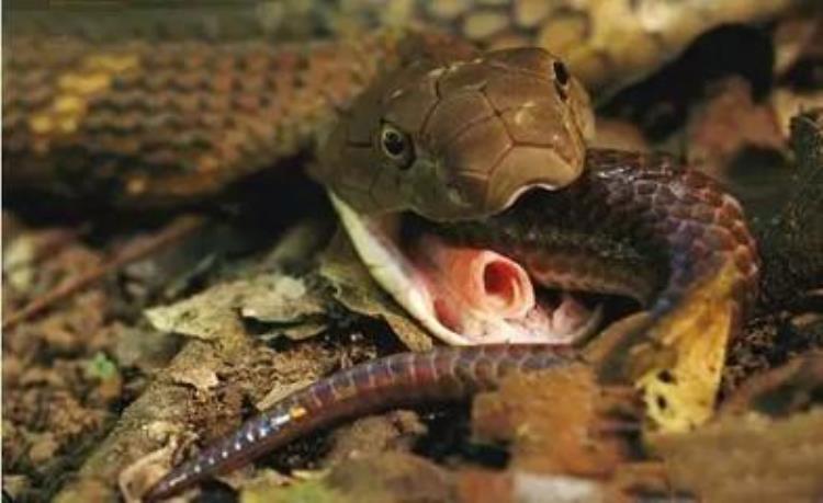 没错,蛇的天敌里也有它们自己,很多蛇类会吃同类的幼蛇,即使是黑曼巴这种超强的毒蛇,其幼崽也可能丧命在同类的嘴里。其中最臭名昭著的,就是眼镜王蛇了,想在眼镜王蛇的领地内见到其他蛇类,几乎就是不可能的,来一个吃一个,来两个吃一双。