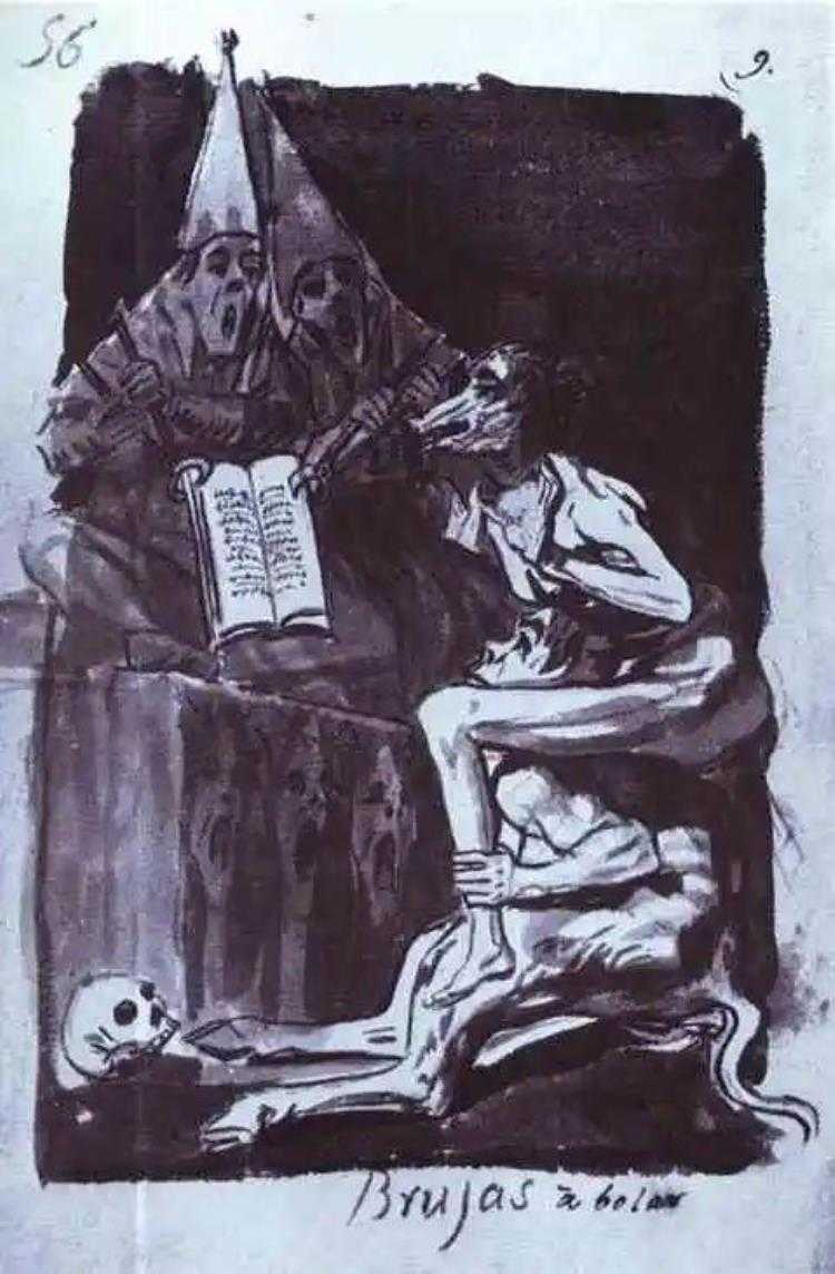 然而对于戈雅是否是这些画真正的创作者却是一个谜团。但人们更接受这些令人不安的画面是源于一个饱受病痛折磨,精神状态不稳定的独居乡下老人笔下,其宗教隐喻或黑色幽默则出于他对当时混乱局势所折射出的人性的失望。