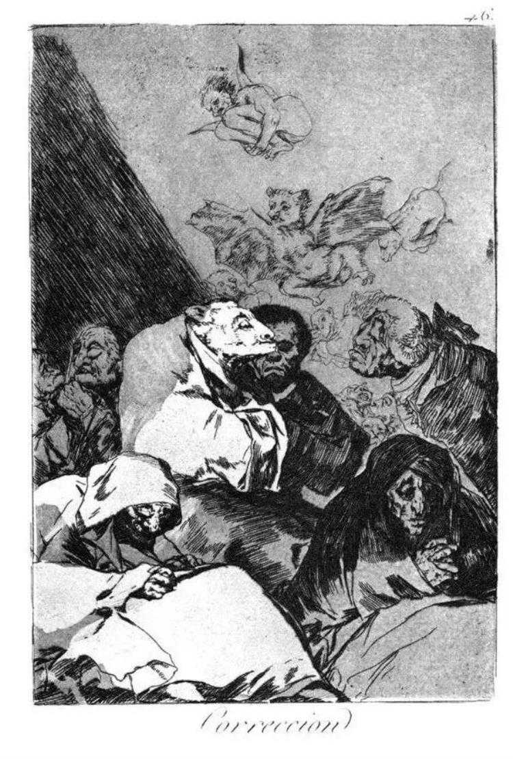 这些怪异的画是他想表达出国家正在现在文明的路上倒退着,国王封闭,人民迷信。社会一片糟糕。他用这些画提醒这个沉睡的国家。