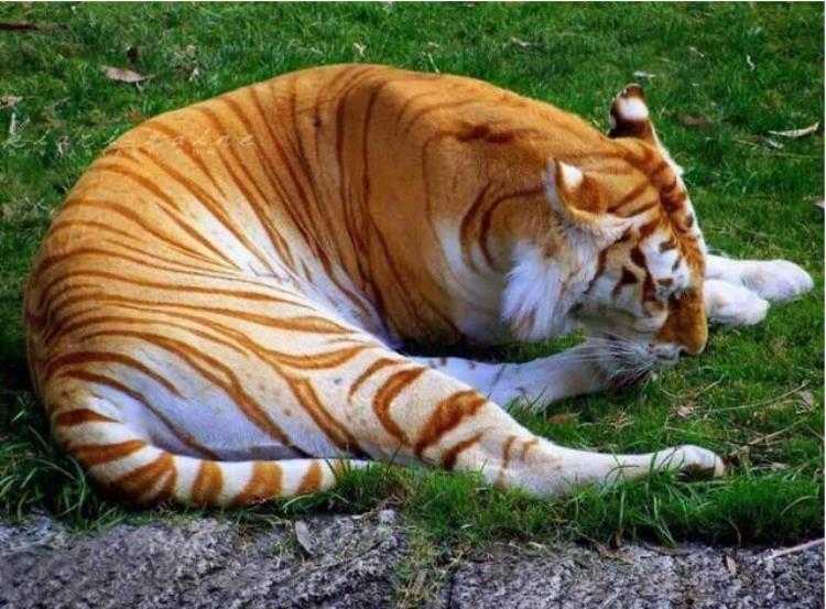 只有在圈养中才能发现这种稀有老虎。 与其他老虎不同,它有一个隐性基因,有时被称为草莓虎或金虎斑。