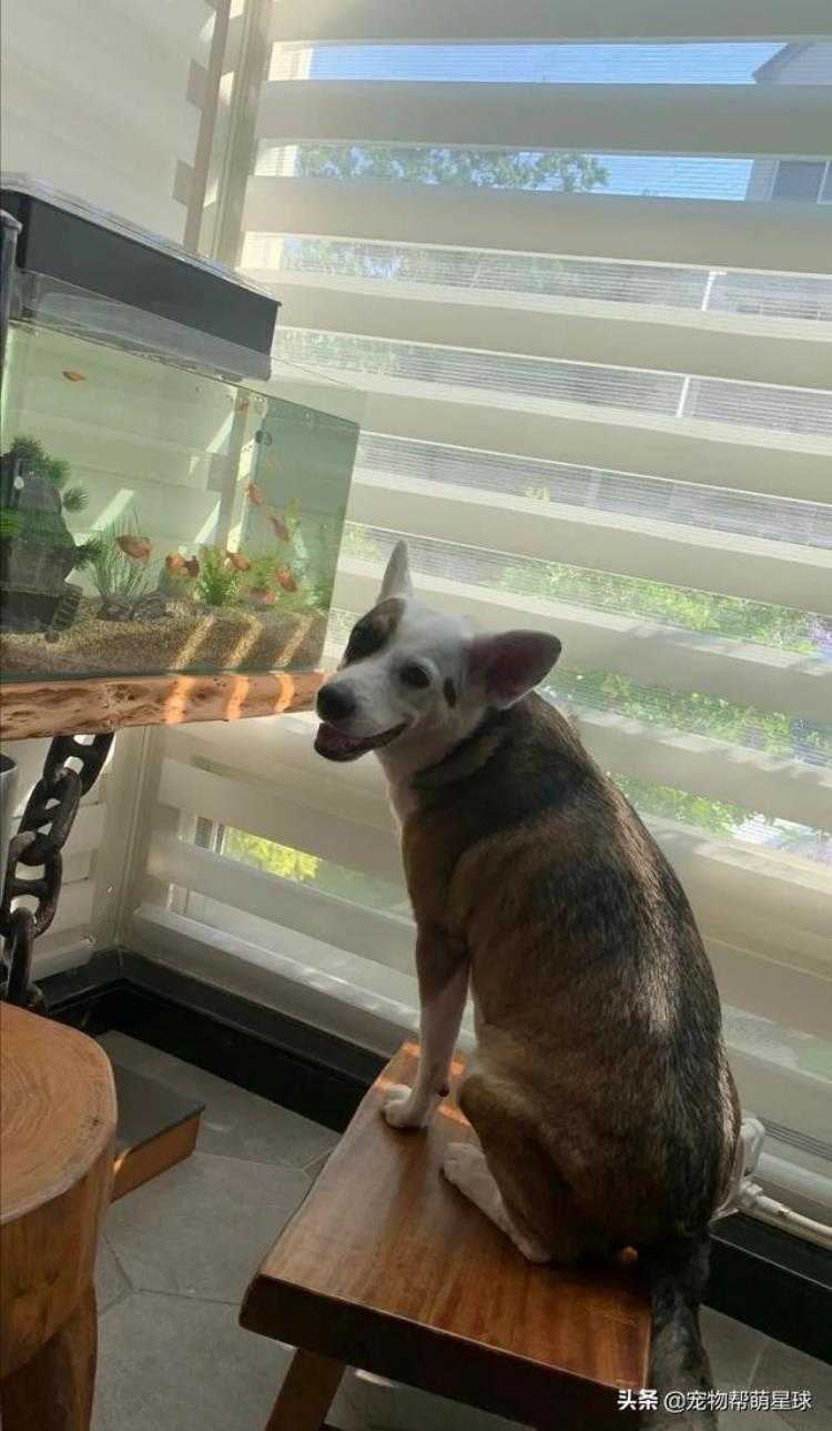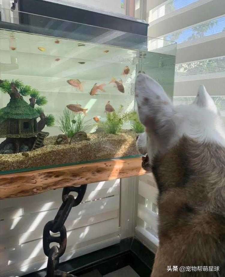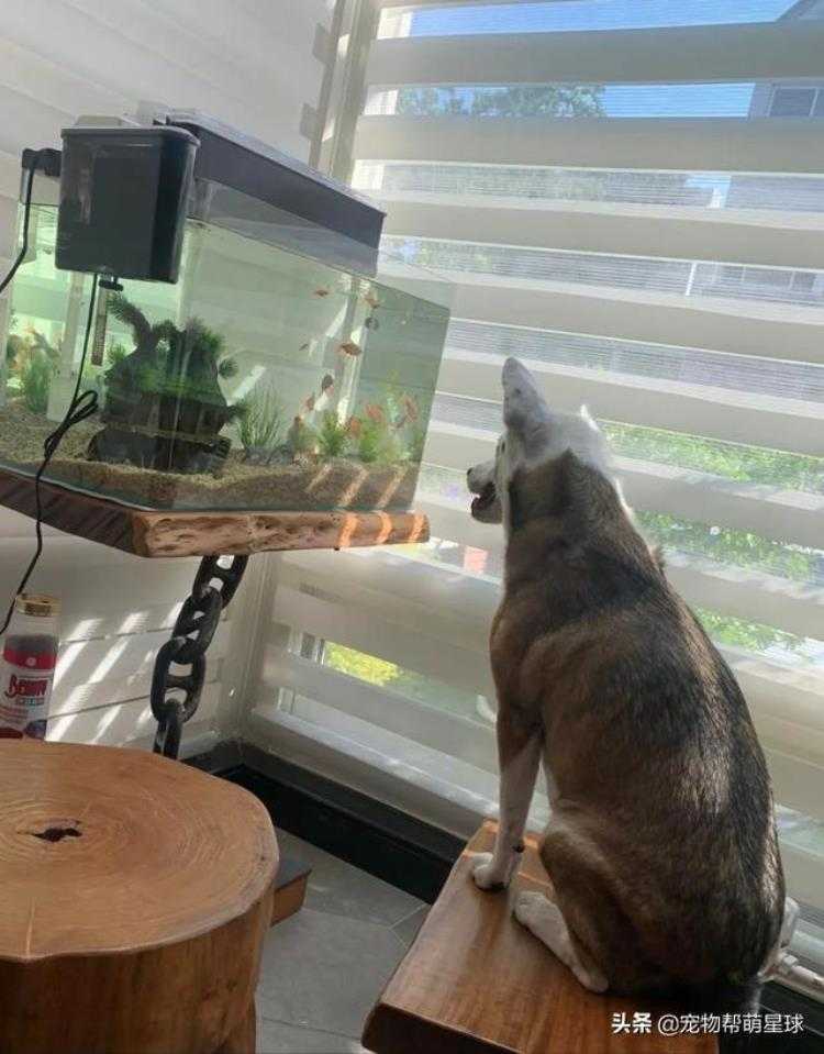 鱼缸里的鱼很激动,狗狗被主人吓醒给了一个犀利眼神