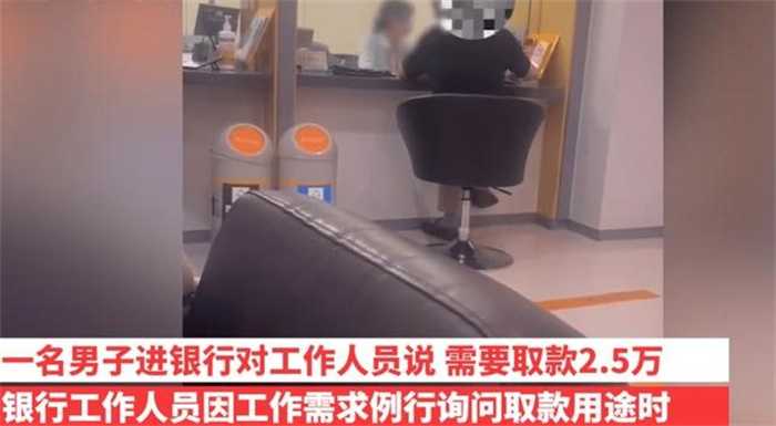一位目击者表示,银行的工作人员询问取款用途是属于职责范围内的常规程序。主要是为了防止用户受到诈骗,然而这名男子在取款的时候,对于需要回答这么多问题感到了不满,和不耐烦他坚持认为这些钱是属于自己的,工作人员没有任何必要和需求来询问自己取款的用途,这个事情进行了进一步的升级以后,而这名男子看到工作人员因为自己的态度而委屈的哭了,最终才同意将2.5万元全部给取走。