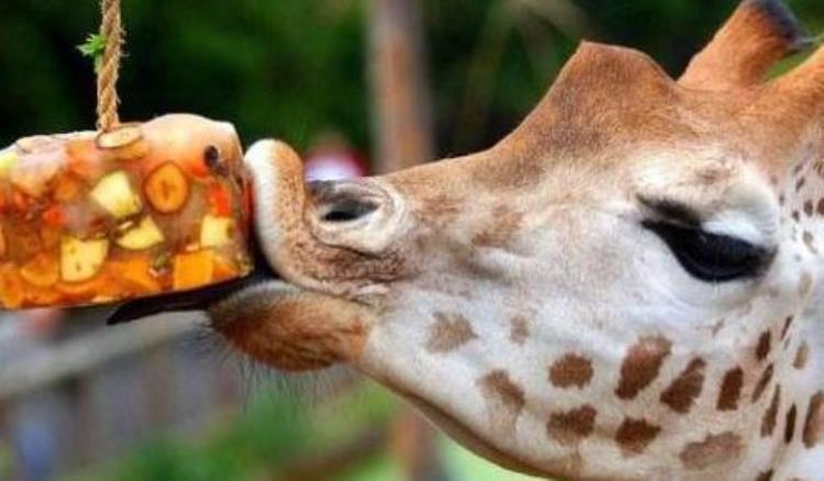 这个大家伙的口味却比一般的长颈鹿怪异,喜欢吃各种蔬菜做成的“冰棍”。