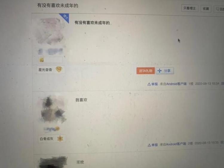 在百度贴吧里,有网友以穿着白色丝袜的未成年少女照片作为头像,发帖征集长期“连麦”的对象,有帖文说:“有没有喜欢未成年的?”引来多个“喜欢”的回复。
