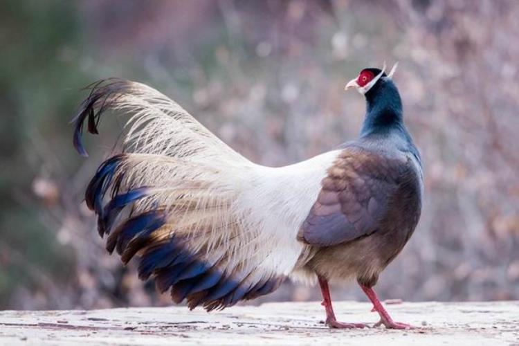 褐马鸡是我国特产鸟类,尾略微侧扁,具有20~24枚尾羽,长长的两对中央尾羽比最外侧尾羽长一倍左右,向体后高高翘起,柔软而细密的羽支披散下垂,就像蓬松的马尾,样子十分别致。当它们在林间疾跑时,远远看去就好像一群奔马,因而被称之为“马鸡”。