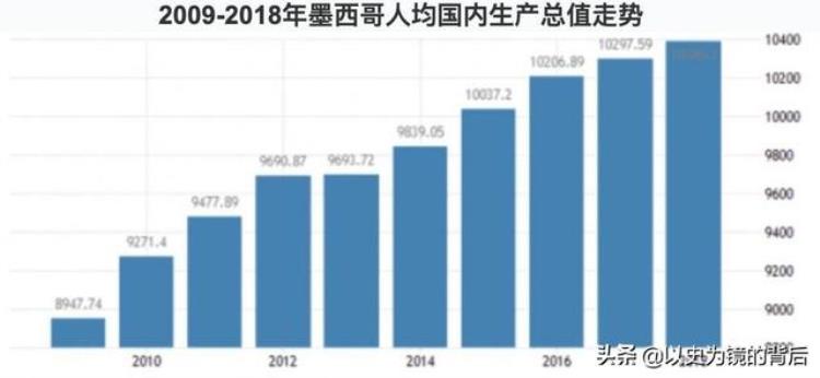 再看一下墨西哥的人均GDP。墨西哥目前人均GDP8400美元。这个数字虽然没有达到全球人均GDP平均水平,但也并不低,算是中上等的水平。当然,墨西哥的人均GDP在十多年前就突破一万美元了,后来由于众多原因,经济下滑。所以其人均GDP才下降。但不管怎么说,墨西哥的人均GDP也并不低。