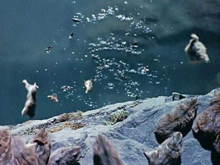 △一些自媒体文章中还配发了一段视频,查证发现这段视频来自于电影《白色荒野》(White Wilderness),是一段人为导演的旅鼠自杀镜头。