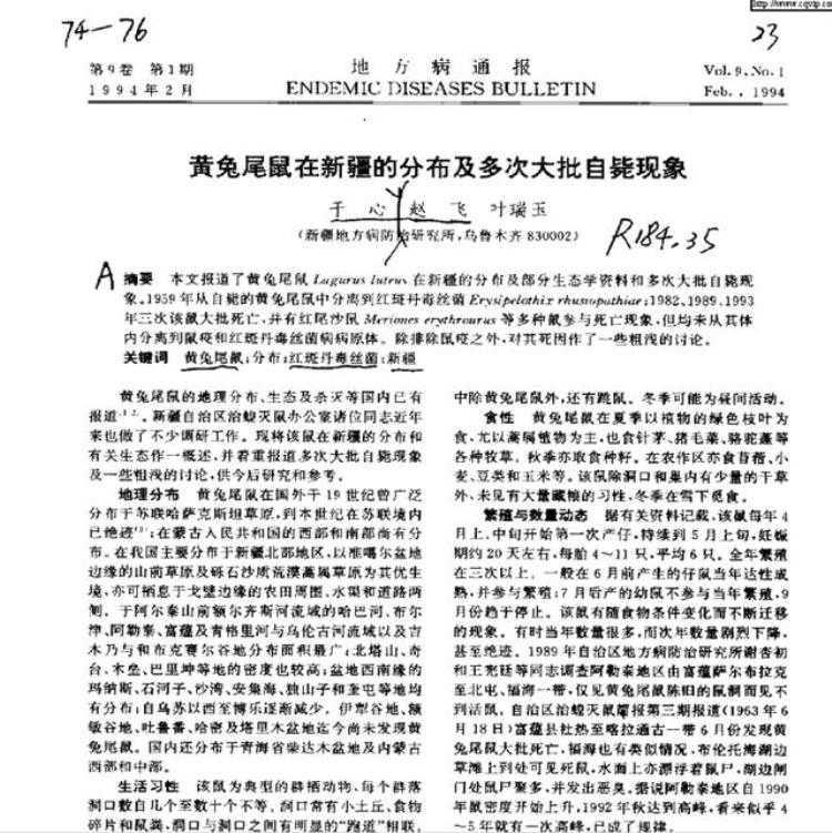 不仅仅是媒体报道,“新疆老鼠自杀”也引发了各类研究机构的兴趣,网络上能查到多篇相关的研究文章。如1994年2月《地方病通报》杂志就刊发了新疆地方病防治研究所的文章称,新疆在1959年、1982年、1989年、1993年曾发生过四次黄兔尾鼠自毙事件。四次草原鼠自毙均发生在5月-7月期间,其中,仅1959年的黄兔尾鼠自毙是因为感染了红斑丹毒丝菌,其余三次均排除了鼠疫的因素。该文也对“鼠种群密度增高后自动调节”这一自毙原因表示了质疑,认为更大的可能性是尚未被认识的一种鼠间传染病所致。