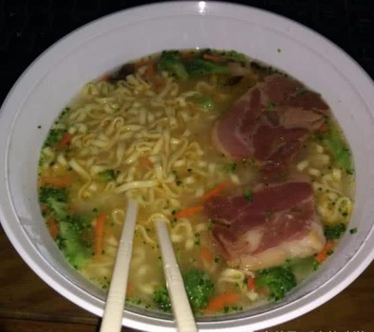 当然满汉宴也有他自己最大的有点就是肉块真的很大,一包叉烧料理包倒进去之后,是几块很大的牛肉,看着就很有食欲,比起来康师傅的牛肉粒,这个真的是泡面中的极品了。另外第二个优势就是它的汤底都是浓浓的大骨汤,喝了很有营养。这也不是每一个泡面都具有的特点。凭借这两大优势成为了国内最贵的泡面。