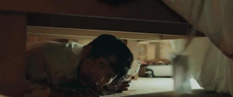 突然,他在寻找线索时发现床下有一个满脸是血的男人。