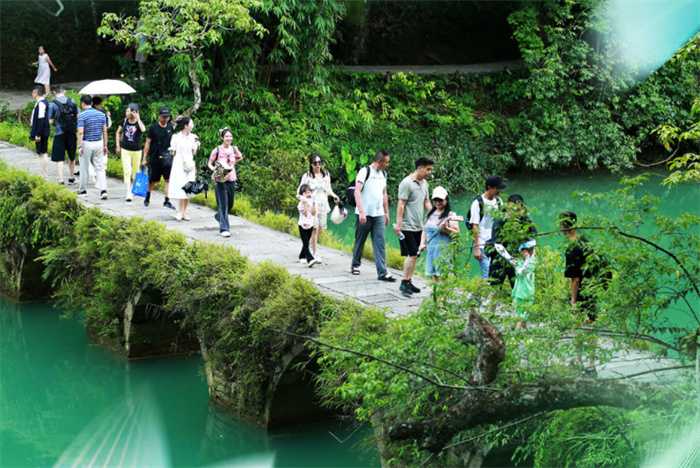 在贵州省荔波县小七孔景区,人们在这里排队等待游乐项目,这里一直是当地著名的风景区,如今进入暑期,学生考试结束纷纷放假,还有的学生开始了毕业游、全家游等等,从全国各地赶来的旅客为当地的经济发展做出了贡献,在欣赏优美景色的同时,也让当地景区的知名度进一步提升。在河北宽城满族自治县花溪城景区,人们纷纷下水游玩,在得天独厚的地里自然条件优势之下,当地人们把这里开发成自然景区,每到夏季都会有很多游客盘活当地经济。