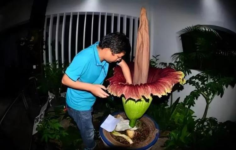 巨魔芋,是一种只生长在印尼苏门答腊岛热带雨林中的一种巨型植物,它的叶柄高度可超过4米,叶片的直径超过5米,当它开花之后,仅一朵巨魔芋花,它的覆盖面积就可以达到20平方米以上,显然,这是非常惊人的。