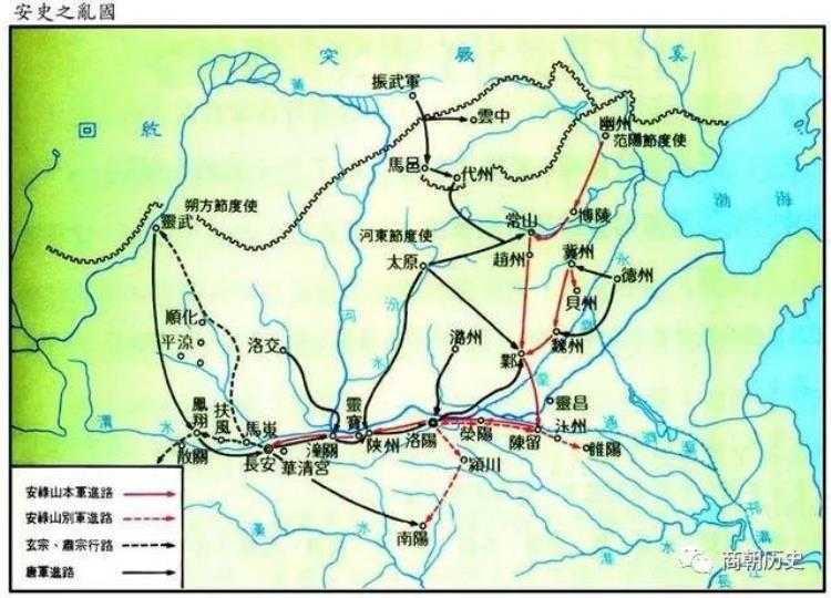 公元755年12月16日安禄山以忧国之危,奉密诏讨伐杨国忠为借口,在范阳(北京)起兵,其数下步骑精锐,烟尘千里,由于安禄山的东北势力庞大,骑兵之后没有遇到任何有效抵抗就占领河北,