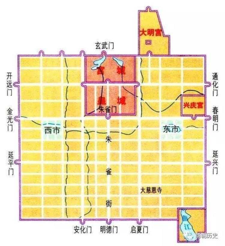 155米宽的朱雀大街纵贯城门与皇城,街道纵横交错的长安城内。