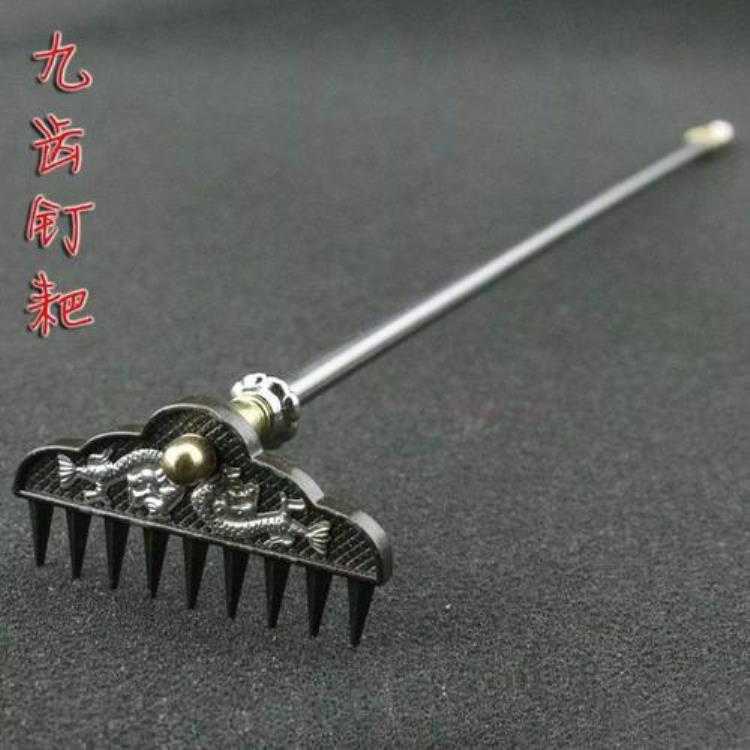 要说九齿钉耙,可是太上老君亲手一锤锤炼成,天庭神仙都出了力。天蓬元帅掌管天河,责任重大,玉帝就把这件武器赐给了他。钉耙的排列长短也没那么简单,短长上下定乾坤,左右阴阳分日月。再来与金箍棒做下比较,大多数人对金箍棒的理解:它是东海的定海神针,可以自如伸缩,是孙悟空斩妖除魔的利器,另外它在外表上比较酷,九齿钉耙是个锄地的农具,看起来就没那么有档次。金箍棒同样是太上老君所造,大禹治水时被用来测量江河,大禹应该也和孙悟空一样让它任意变大变小。那么九齿钉耙和金箍棒都是出自太上老君之手,不相上下。