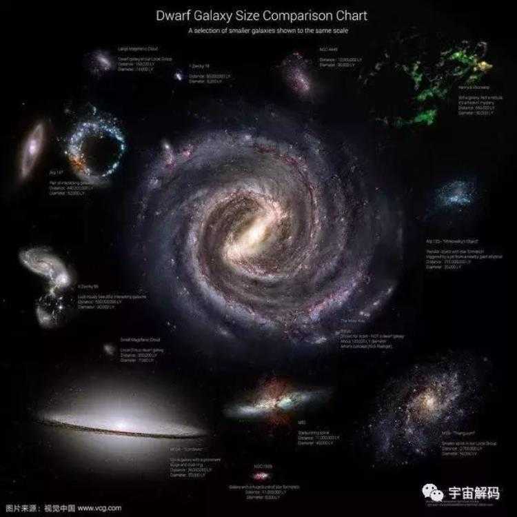 IC1101:是已知宇宙中最大的星系,位于距离地球大约10.45亿光年的阿贝尔2029星系群的中心星系,其直径约为600万光年(包含晕),相当于银河系直径的20多倍,是已知最大的星系。