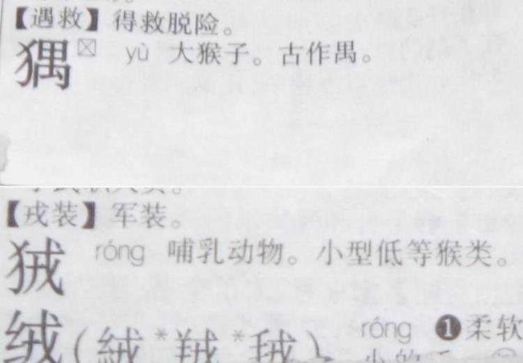 犭禺:大猴子,古作禺。狨:小型低等猴类。