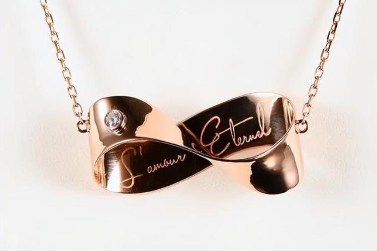 莫比乌斯环一边连着另外一段,如果你沿着其中一个点一直往下走,它是无穷无尽的,或者说是周而复始的,这样一来人们把它象征为无穷无尽的爱情,或者是生生世世轮回的爱情。比如有的项链、戒指便做成了莫比乌斯环的形状或者是含有莫比乌斯环的元素,赋予它长久的爱情意义,以便获得恋爱人士的青睐。
