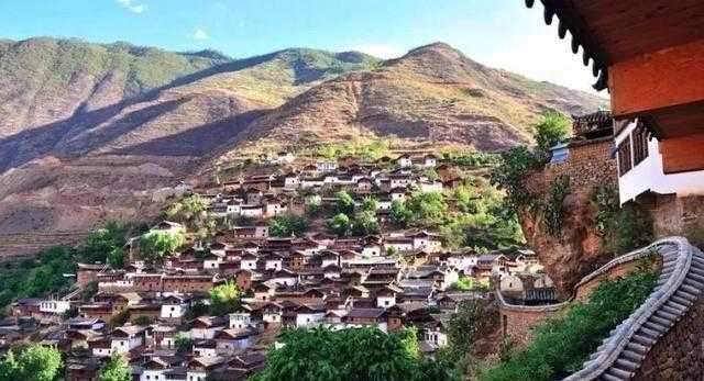 云南宝山石头城,百余户纳西人家聚居在一块独立的蘑菇状岩石上,三面悬崖绝壁,猿猴也难攀爬上来。