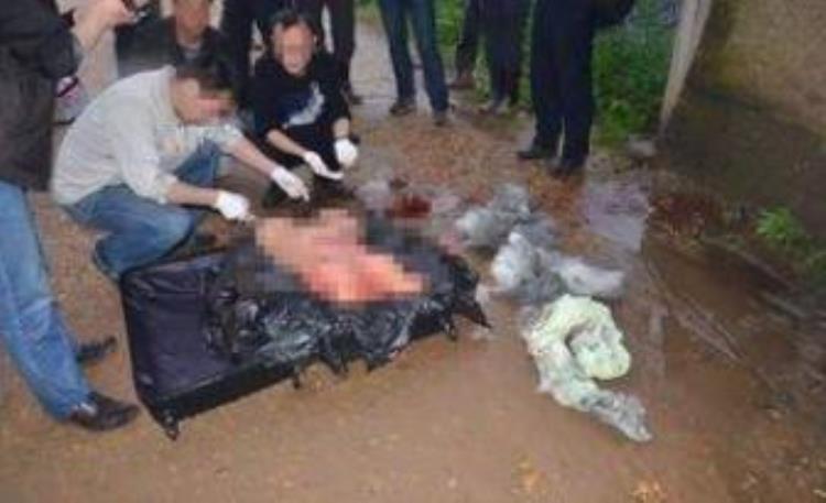 里面都分别装着大小不一的碎尸块。垃圾袋内的尸块大约有一斤多,两个拉杆箱内的碎尸块足足有十多斤重,有其中一个里面装着的都是人体内脏。